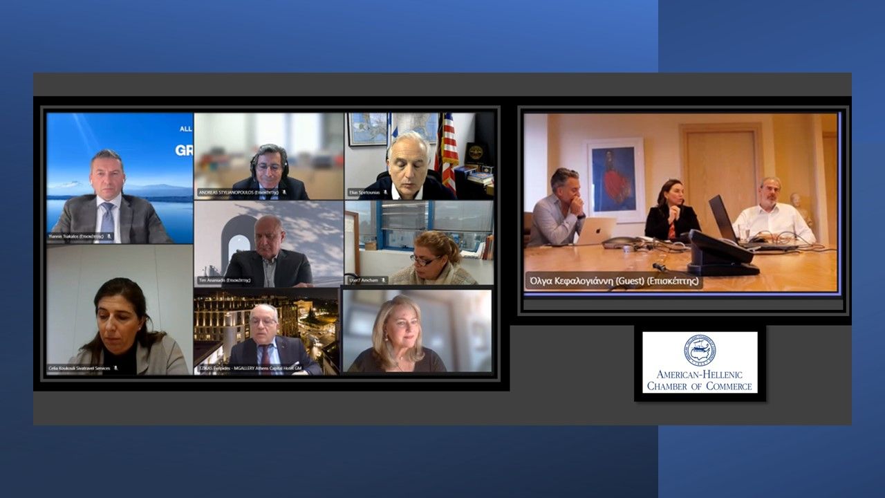 A virtual meeting was held on February 15, 2024 where AmCHam GR Tourism Committee members had the opportunity to discuss issues of common interest with the Minister of Tourism, Olga Kefalogianni and the Secretary General of Greek National Organization, Dimitris Fragakis.