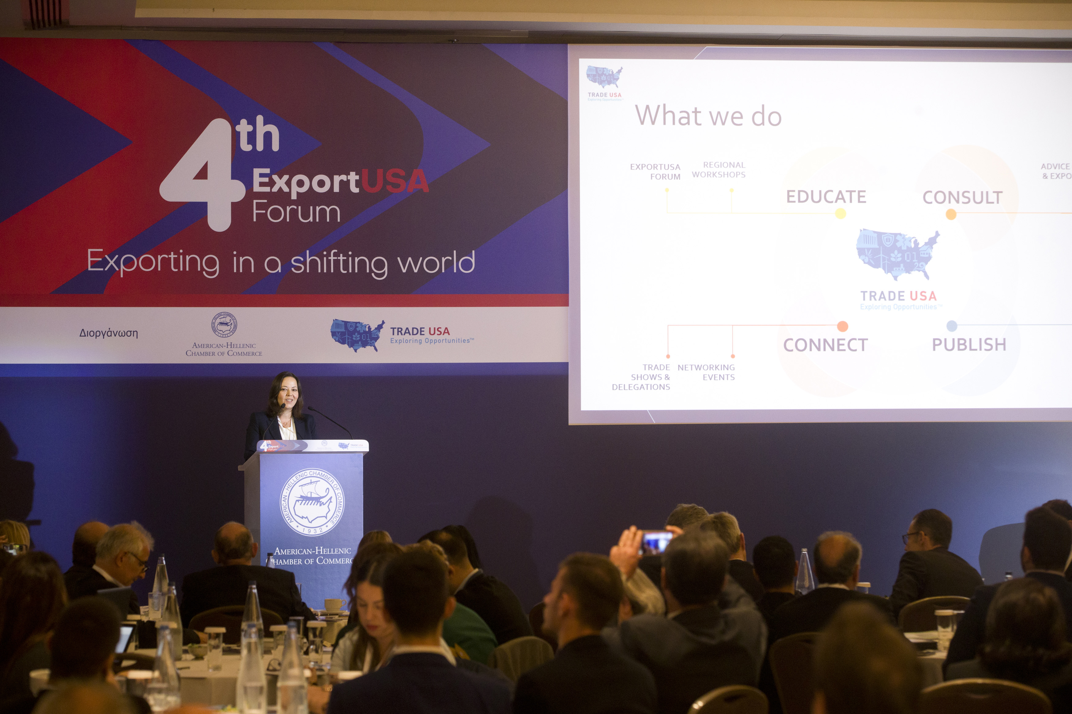 The American-Hellenic Chamber of Commerce and its International TradeUSA Department held for the 4th consecutive year, their annual ExportUSA Forum, the only forum in Greece focusing solely on exporting to the US Market. The 4th ExportUSA Forum, Exporting in a Shifting World, took place on Monday, November 4, 2019 at the Grand Hyatt Hotel Athens.
