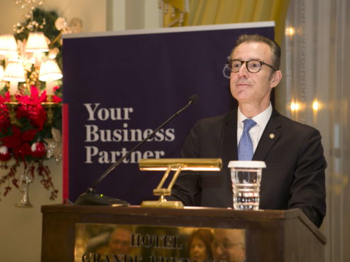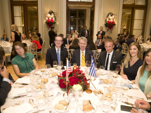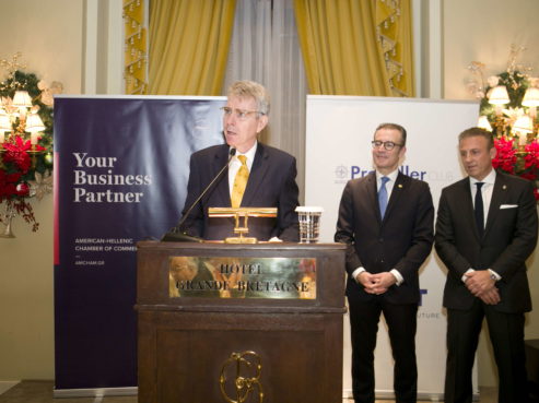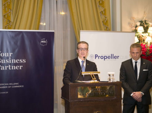 The American-Hellenic Chamber of Commerce and the International Propeller Club of the United States, International Port of Piraeus, have successfully organized their joint Thanksgiving Dinner, on Monday, November 25, 2019, at the Hotel Grande Bretagne. Speeches on the meaning of Thanksgiving were provided by the United States Ambassador, Geoffrey Pyatt and the Presidents of the American-Hellenic Chamber of Commerce, Nikolaos Bakatselos and the Propeller Club, Costis Frangoulis. The event was marked by great success and more than 450 distinguished guests from the business community attended this special gathering.